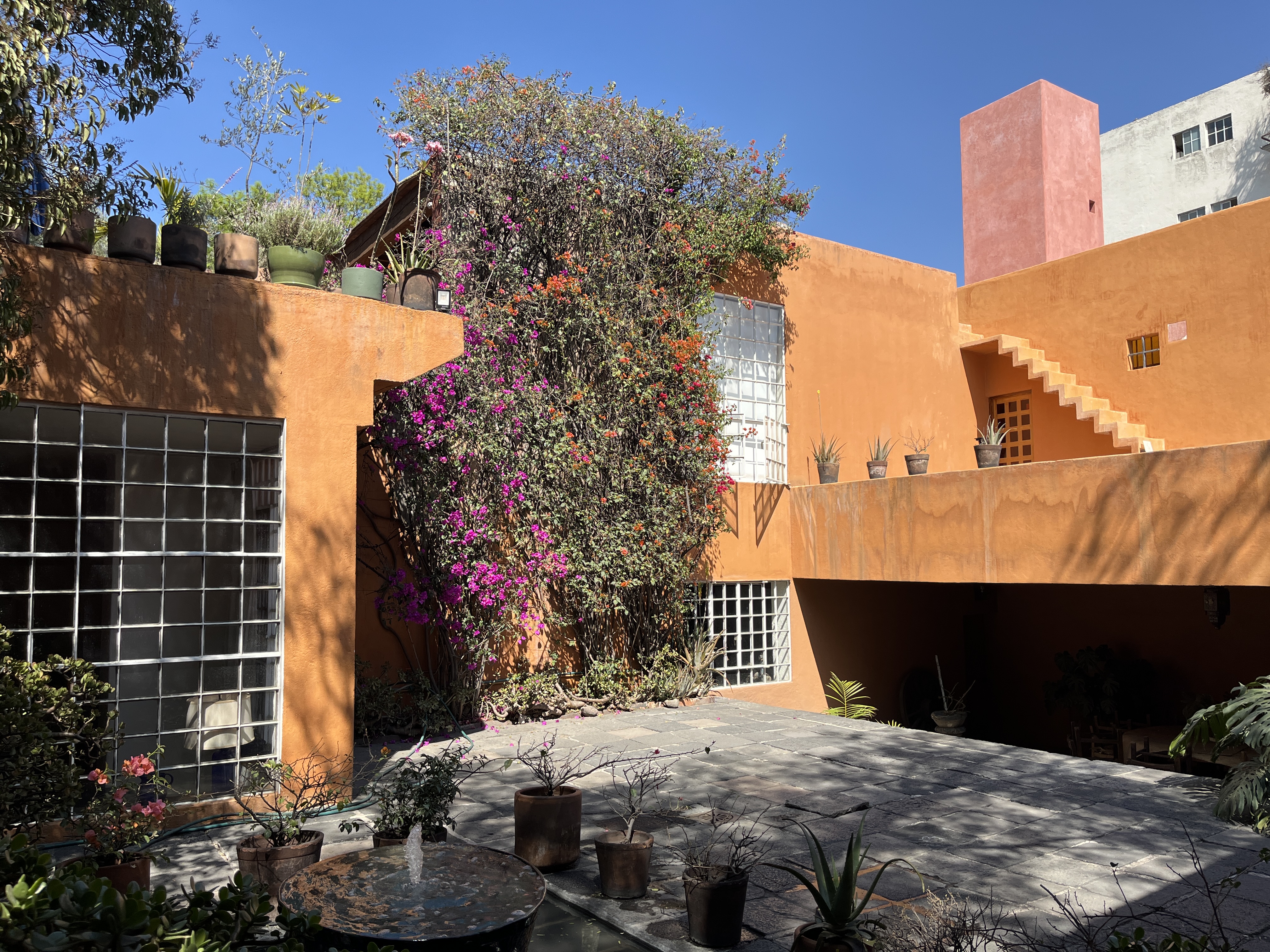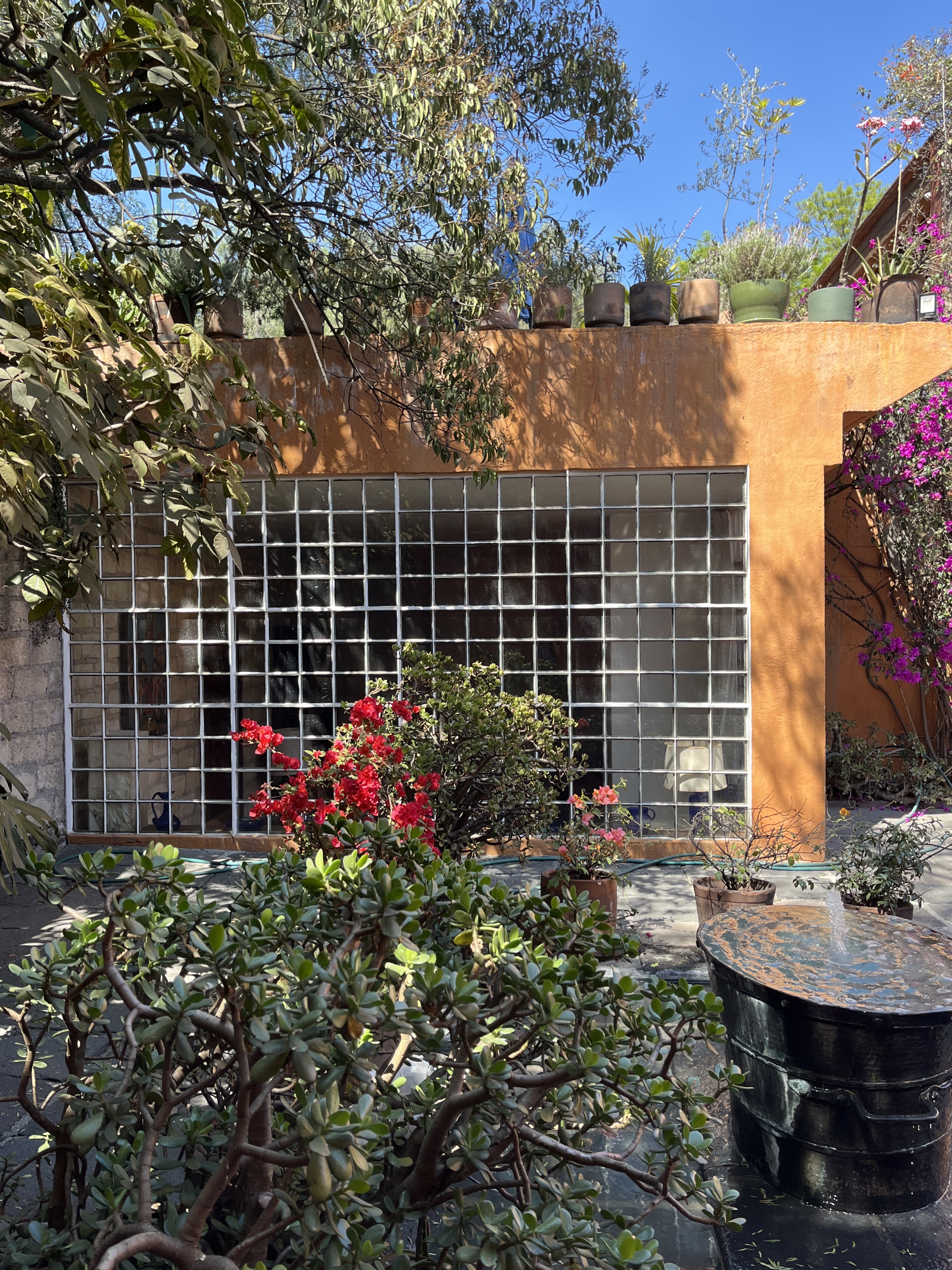 Casa Ortega was built by the mexican architect Luis Barragán (1902-1988) for himself in 1940-42. One can visit the gardens of Casa Ortega – not to be confused with the Casa Barragán – which is just adjacent. It contains some beautiful spots with several basins where fresh water bubbles. Clearly showing that conceiving a garden too can be architecture. The surroundings have changed as much as the garden seems to be preserved and you can hear the never ending heavy traffic of Mexico City in this peaceful environment. It’s much of a time lapse experience.